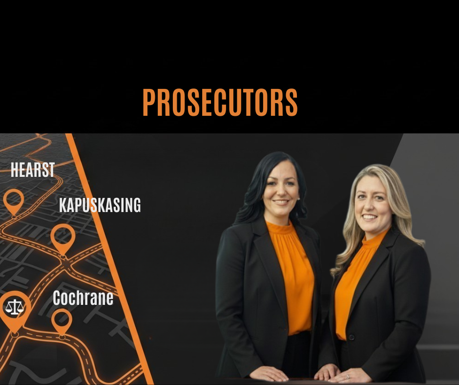 We are the municipal prosecutors of part I offences for the Towns of Cochrane, Kapuskasing and Hearst.